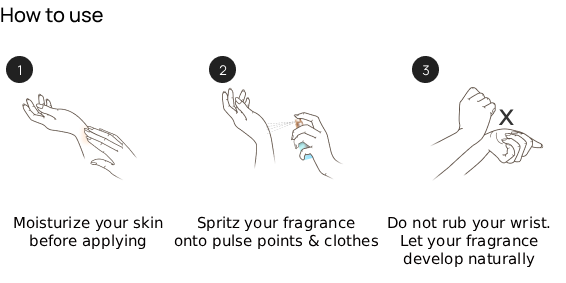 For best results, spray on pulse points like wrists, neck, and behind ears. You can also lightly mist on clothes for extended performance.